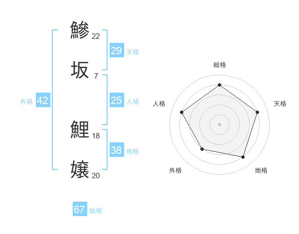 鰺坂 鯉嬢さんの総格は67画の4点!