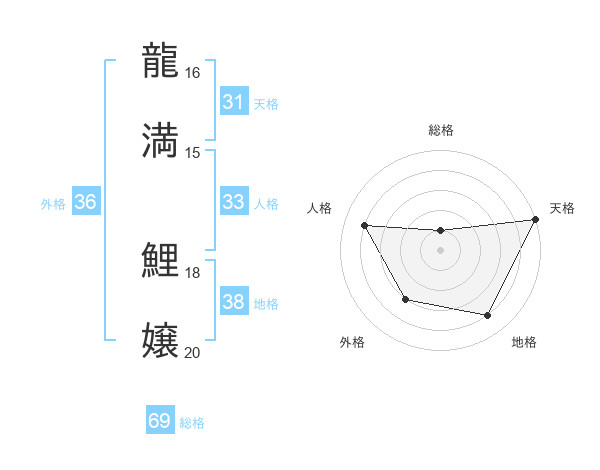 龍満 鯉嬢さんの天格は31画の5点!