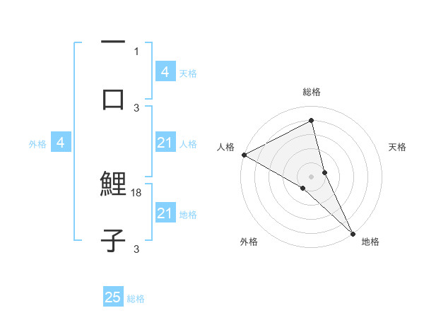 一口 鯉子さんの地格は21画の5点!