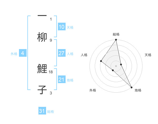 一柳 鯉子さんを姓名の画数から五運を鑑定