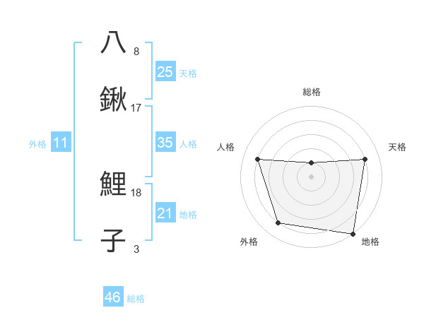 八鍬 鯉子さんを姓名の画数から五運を鑑定