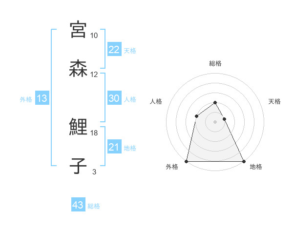 宮森 鯉子さんを姓名の画数から五運を鑑定
