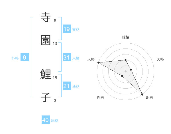 寺園 鯉子さんを姓名の画数から五運を鑑定