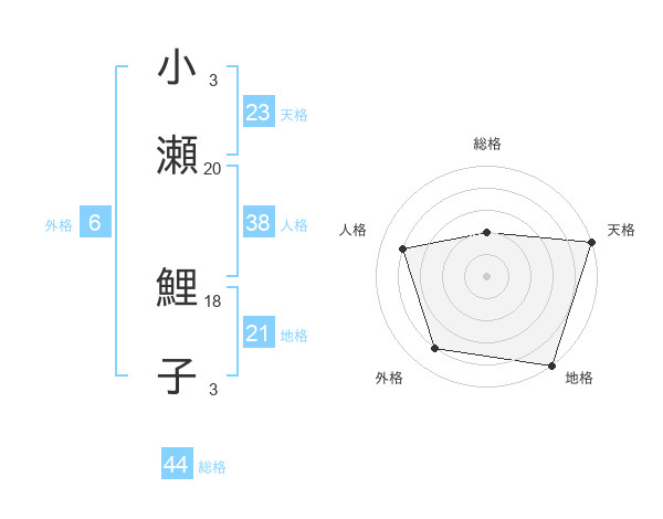 小瀬 鯉子さんを姓名の画数から五運を鑑定