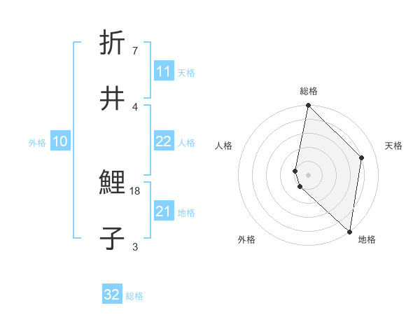 折井 鯉子さんを姓名の画数から五運を鑑定