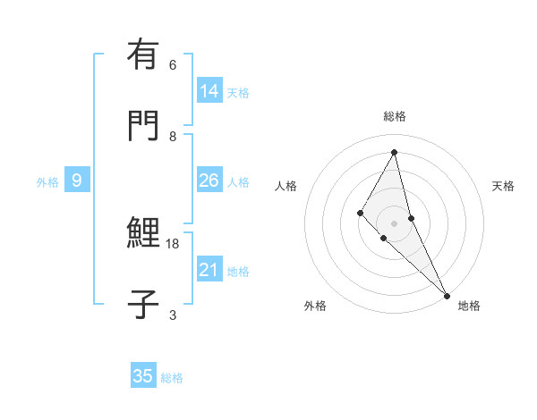 有門 鯉子さんの総格は35画の4点!
