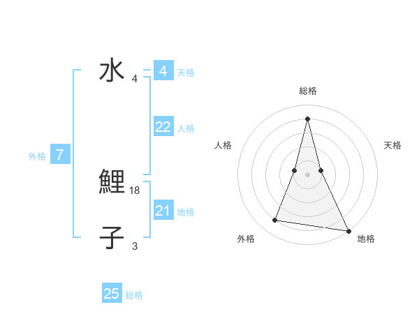 水 鯉子さんの総格は25画の4点!