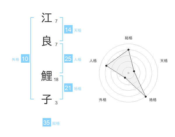 江良 鯉子さんを姓名の画数から五運を鑑定