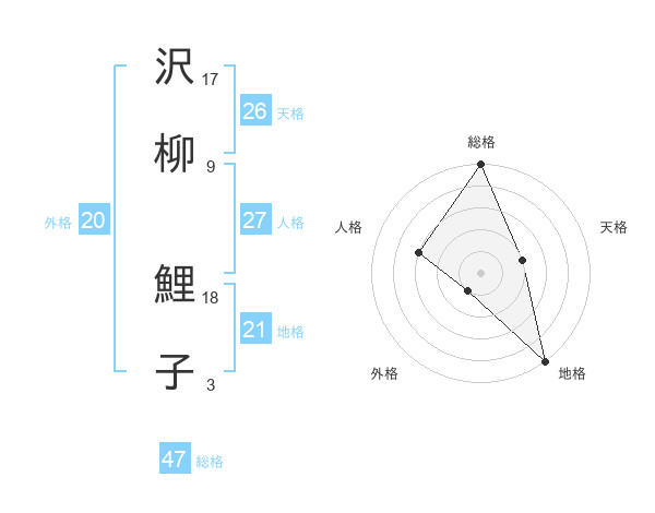 沢柳 鯉子さんを姓名の画数から五運を鑑定