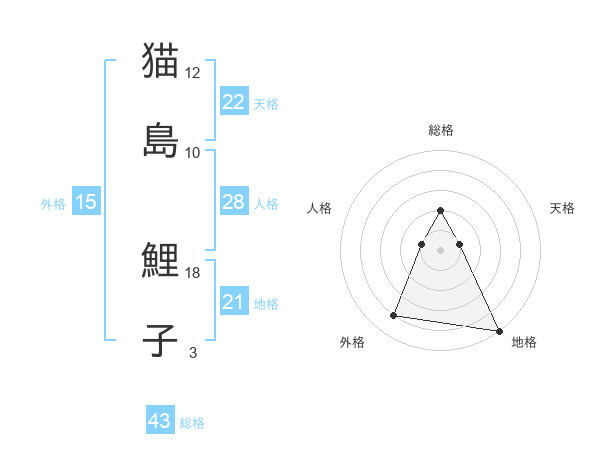 猫島 鯉子さんを姓名の画数から五運を鑑定