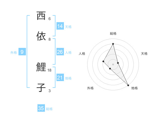 西依 鯉子さんの総格は35画の4点!