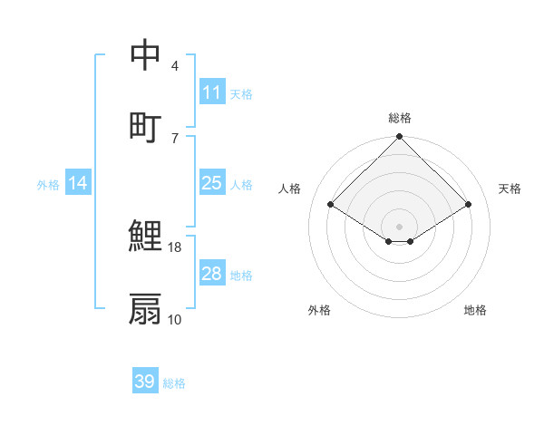 中町 鯉扇さんを姓名の画数から五運を鑑定
