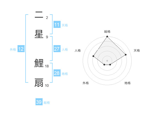 二星 鯉扇さんの天格は11画の4点!