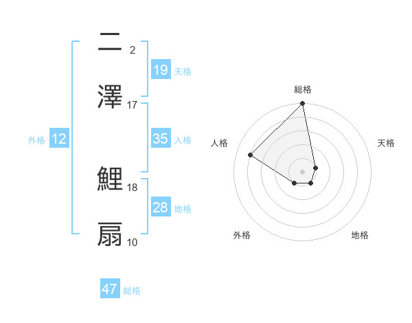 二澤 鯉扇さんを姓名の画数から五運を鑑定