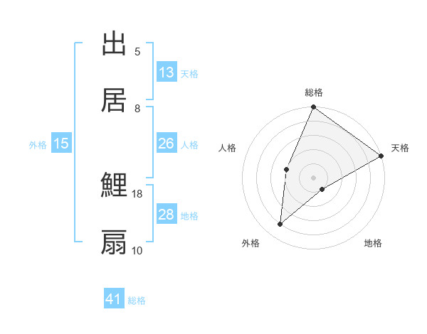 出居 鯉扇さんの総格は41画の5点!