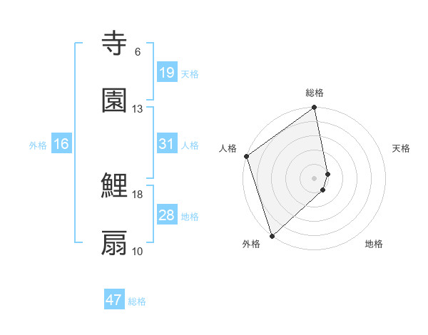寺園 鯉扇さんを姓名の画数から五運を鑑定