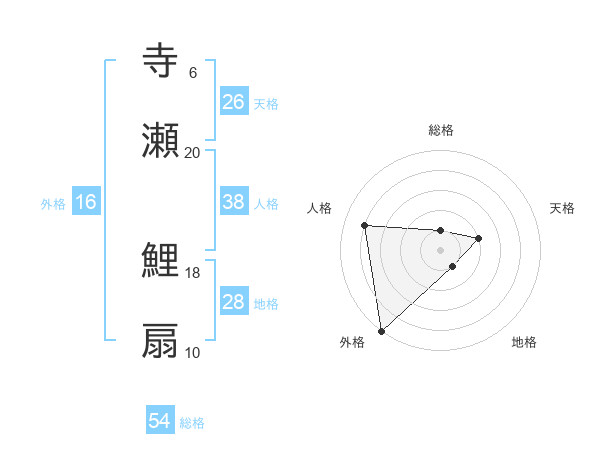 寺瀬 鯉扇さんの外格は16画の5点!