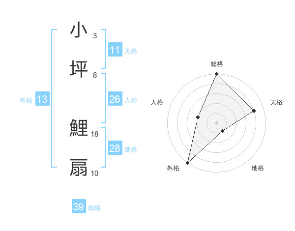 小坪 鯉扇さんを姓名の画数から五運を鑑定