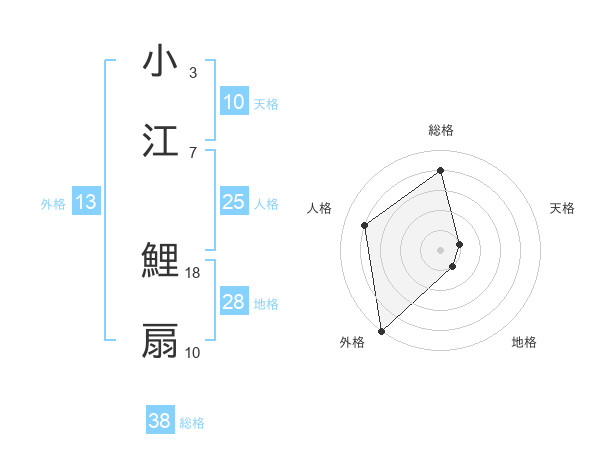 小江 鯉扇さんの総格は38画の4点!