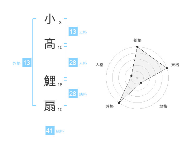 小髙 鯉扇さんを姓名の画数から五運を鑑定