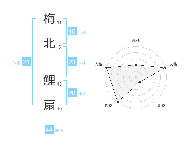 梅北 鯉扇さんを姓名の画数から五運を鑑定
