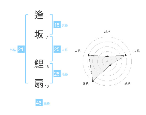 逢坂 鯉扇さんの天格は18画の4点!