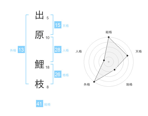 出原 鯉枝さんを姓名の画数から五運を鑑定