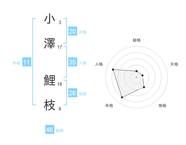 小澤 鯉枝さんの外格は11画の4点!