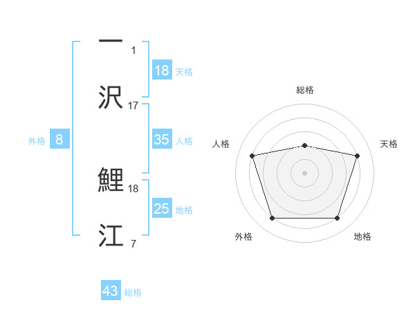 一沢 鯉江さんを姓名の画数から五運を鑑定