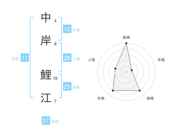 中岸 鯉江さんの総格は37画の5点!