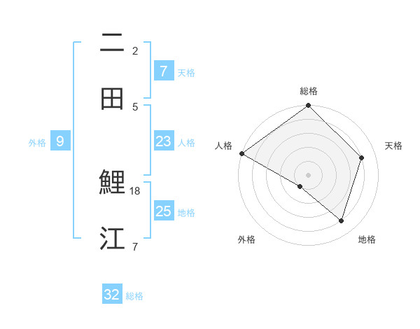 二田 鯉江さんを姓名の画数から五運を鑑定