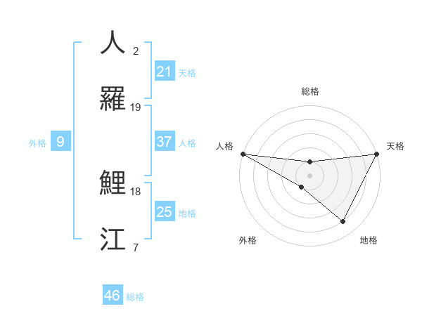 人羅 鯉江さんを姓名の画数から五運を鑑定