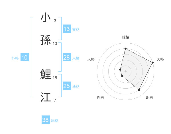小孫 鯉江さんを姓名の画数から五運を鑑定