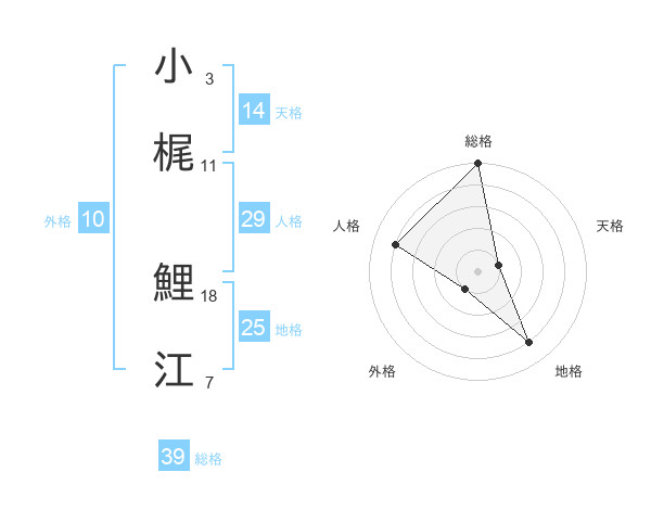 小梶 鯉江さんを姓名の画数から五運を鑑定