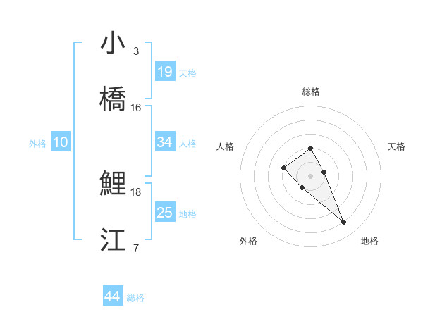小橋 鯉江さんを姓名の画数から五運を鑑定