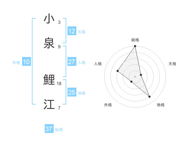 小泉 鯉江さんを姓名の画数から五運を鑑定