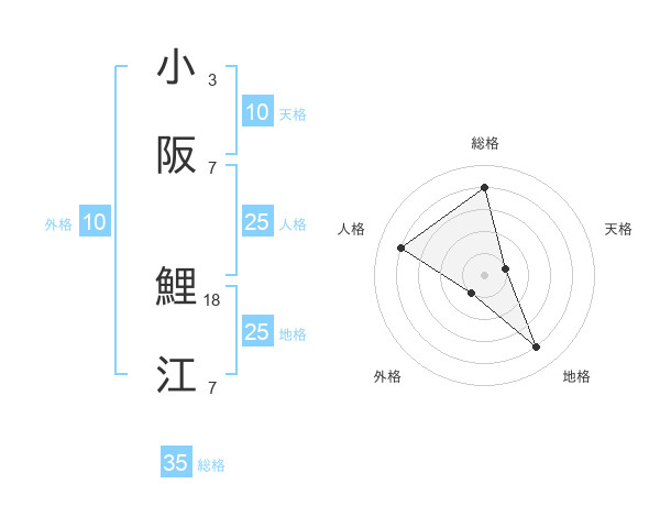小阪 鯉江さんの総格は35画の4点!