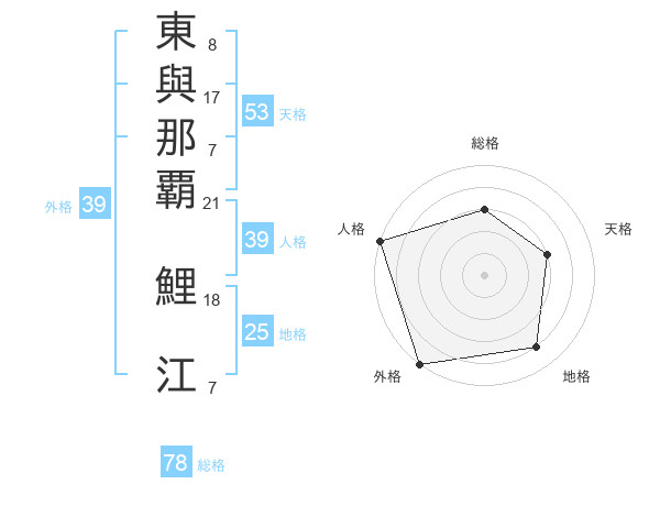 東與那覇 鯉江さんを姓名の画数から五運を鑑定