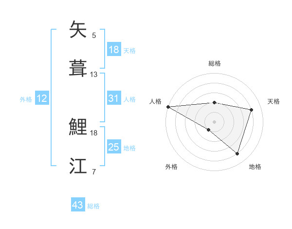 矢葺 鯉江さんの天格は18画の4点!