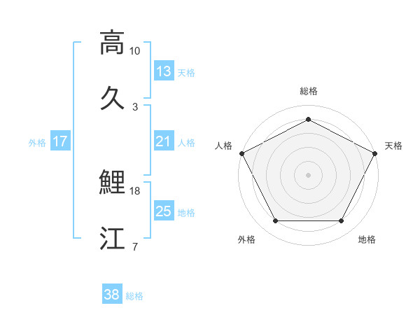 高久 鯉江さんの総格は38画の4点!