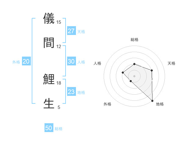 儀間 鯉生さんを姓名の画数から五運を鑑定