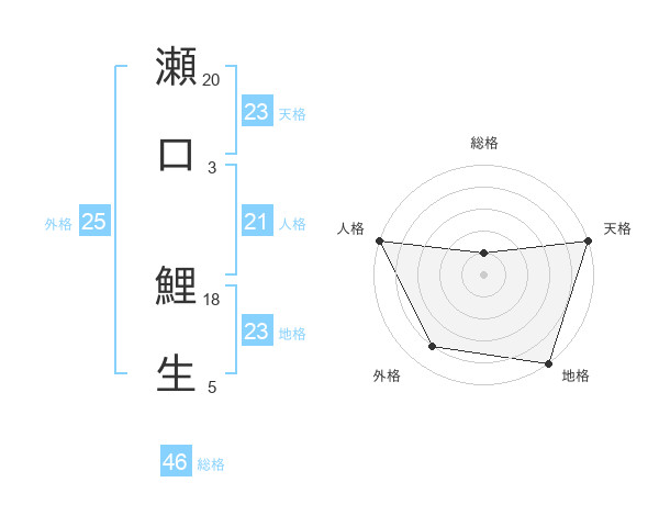 瀬口 鯉生さんの地格は23画の5点!