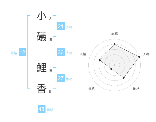 小礒 鯉香さんを姓名の画数から五運を鑑定