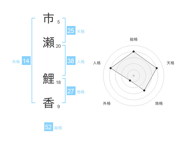 市瀬 鯉香さんの総格は52画の4点!