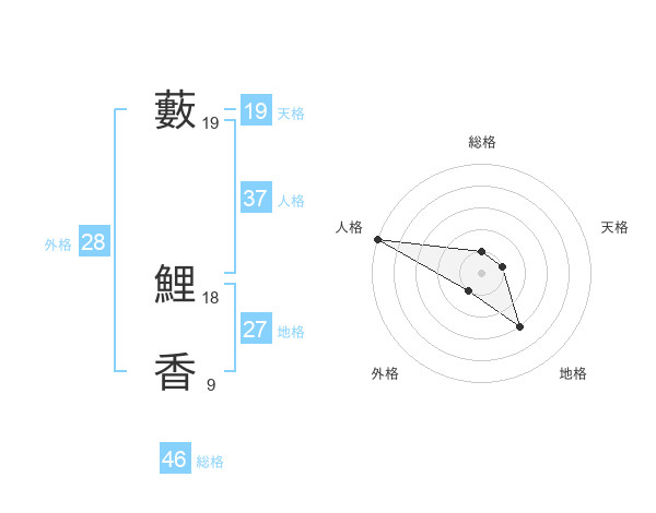 藪 鯉香さんの天格は19画の1点!