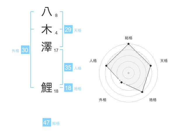 八木澤 鯉さんの総格は47画の5点!