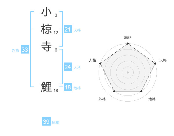 小椋寺 鯉さんの総格は39画の5点!