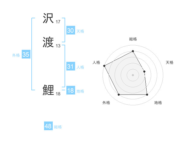 沢渡 鯉さんの人格は31画の5点!