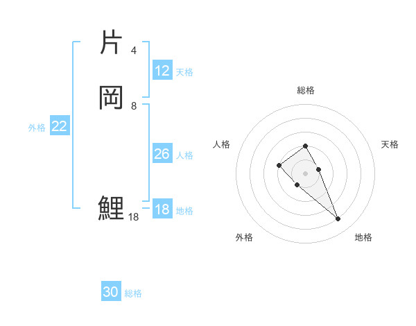 片岡 鯉さんの総格は30画の2点!