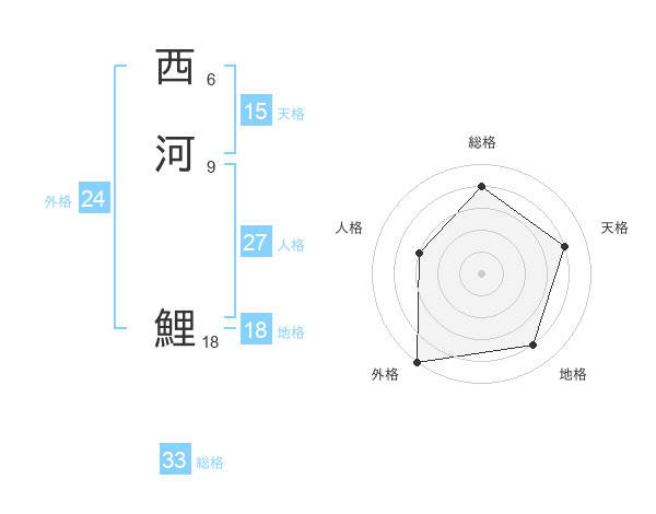 西河 鯉さんの総格は33画の4点!